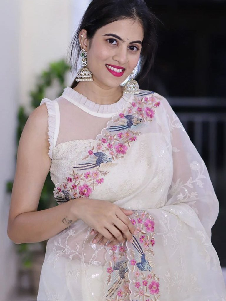 Saree Work- Embroidery Multi Thread Work With Sequins Work