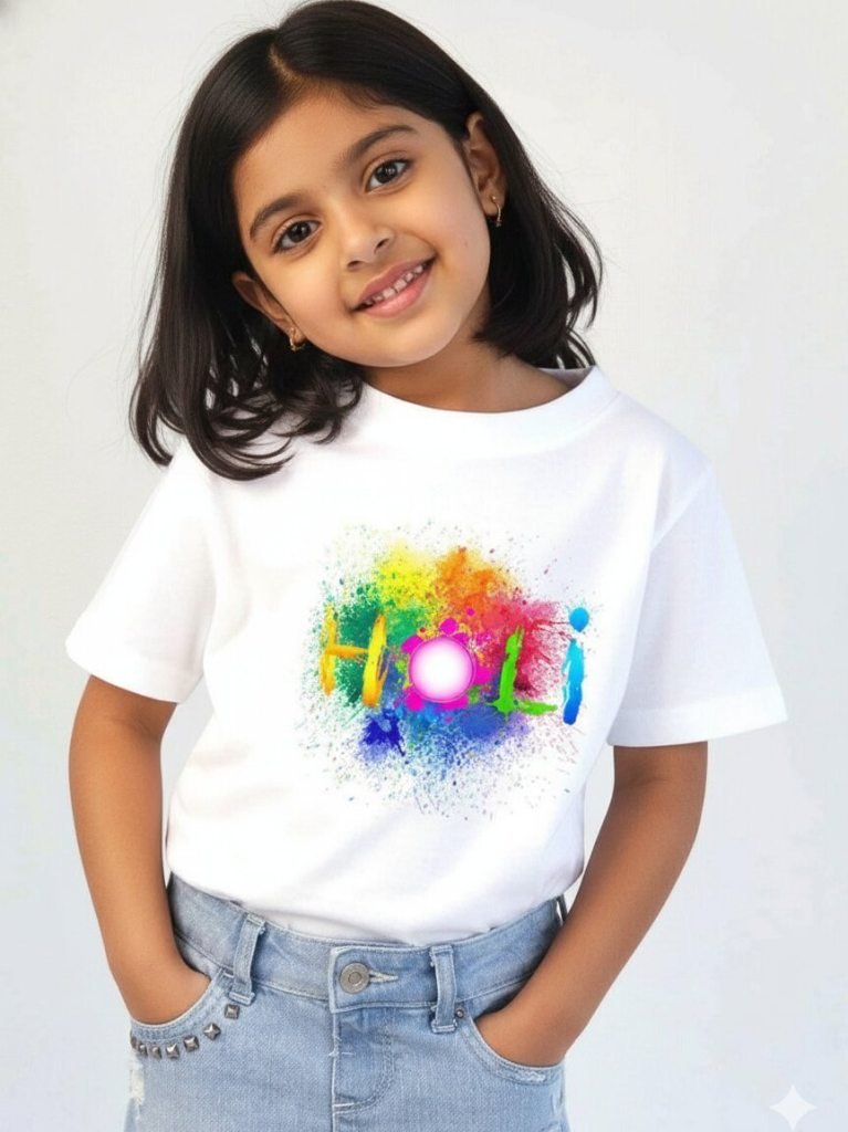 • Special Holi Printed Little Girl T Shirt