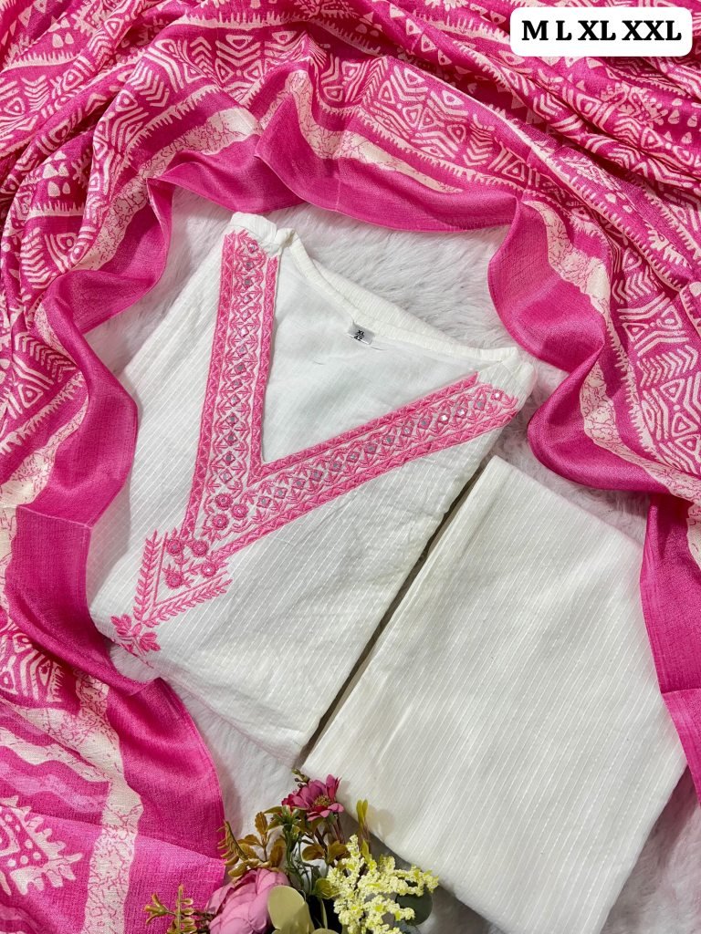 Pure Fine Katha Cotton Fabric Straight Kurti With Pant And Dupatta