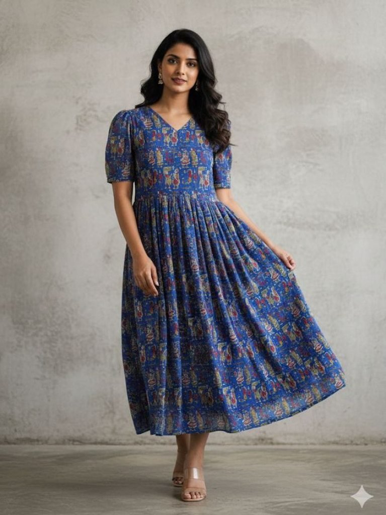 Material:- Fox GeorgetteComplete LinningLength:- 47Sleeves :- Short Sleeve Flare 3.5 MeterSize S-36 M-38 L-40 Xl-42 Xxl-44