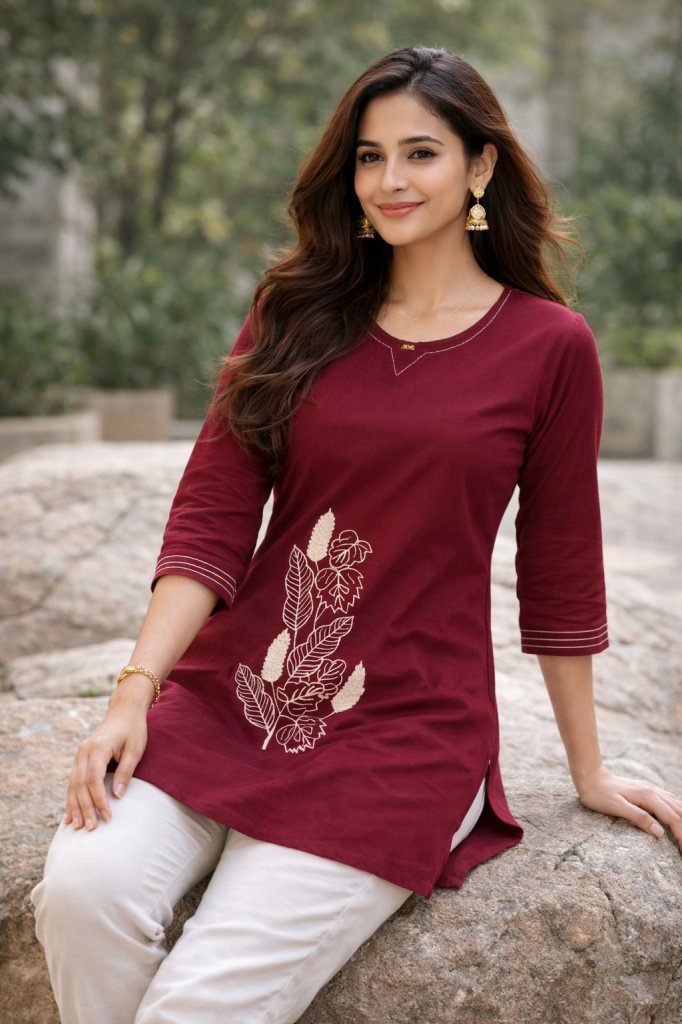Clothes Details Top- Dhabu Cotton ,Designer Hand Embroidery Work Butta Top Length -28 Size -M,L,Xl,Xxl