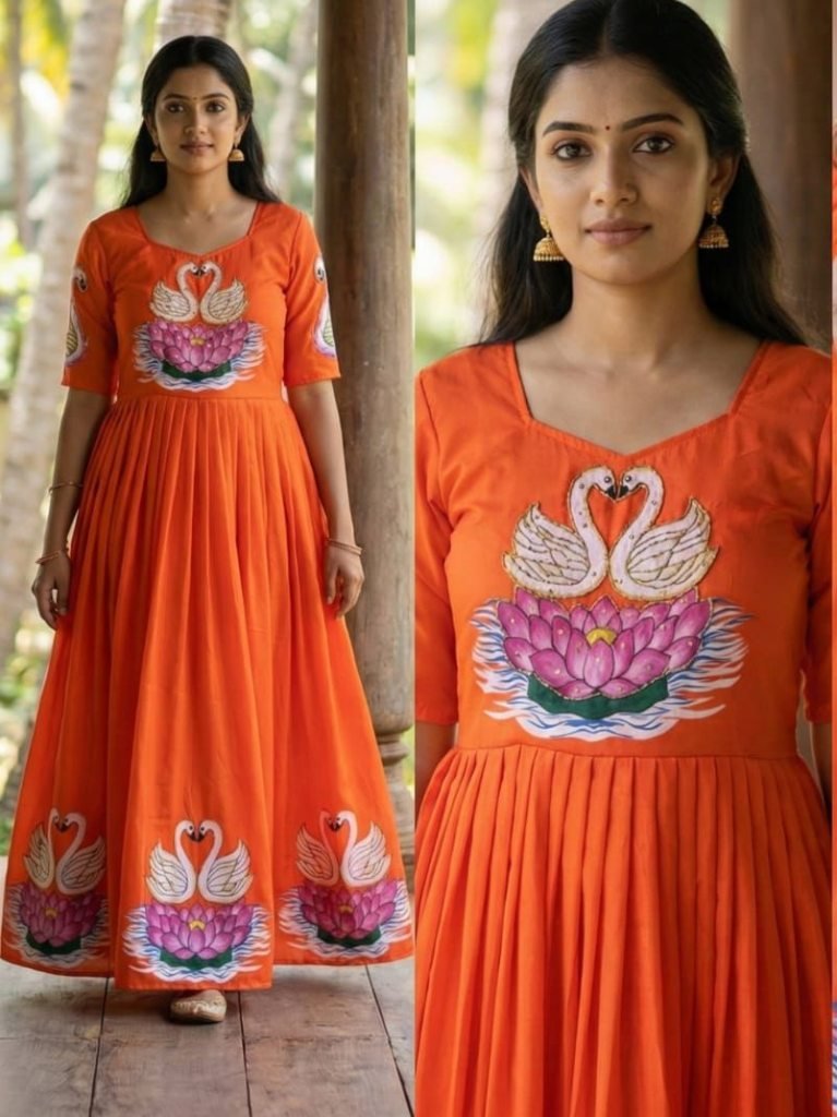 GownFabric :- Maslin Work :- Swan Pattern Print With Khatli Handwork Inner :- Micro CottonSize :- Xs-S , M-L , Xl-XxlLength :- 49/50 Inch