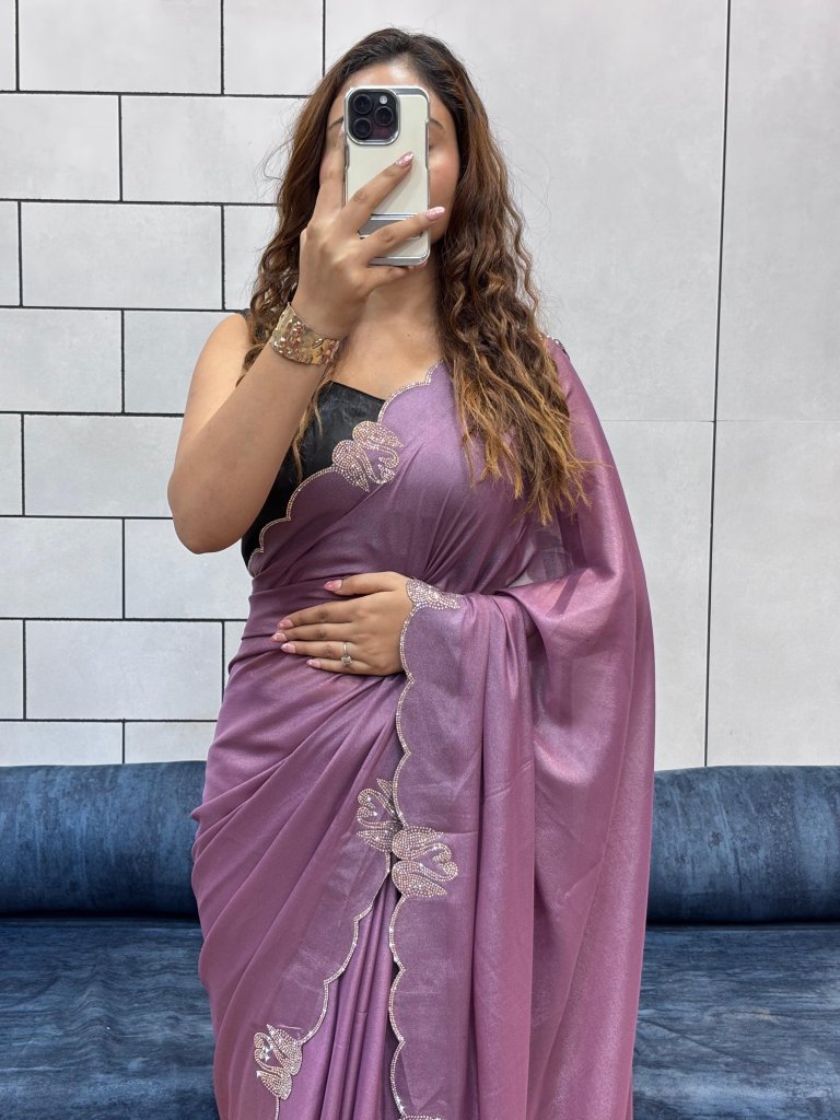 Product Details :-Rich Two Tone Chocolate Fabric Rich Shining With Diamond Swan Cut WorkWith Running Blouse Cut 6.30