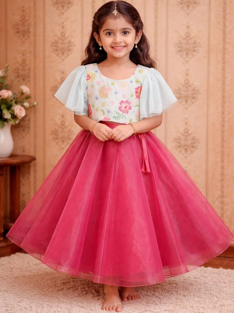 • Soft Georgette Baby Pink Colour Kids Lehenga