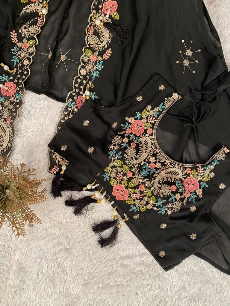 Fabric: Rangoli Silk With Sequence Embroidery Work And Tussles