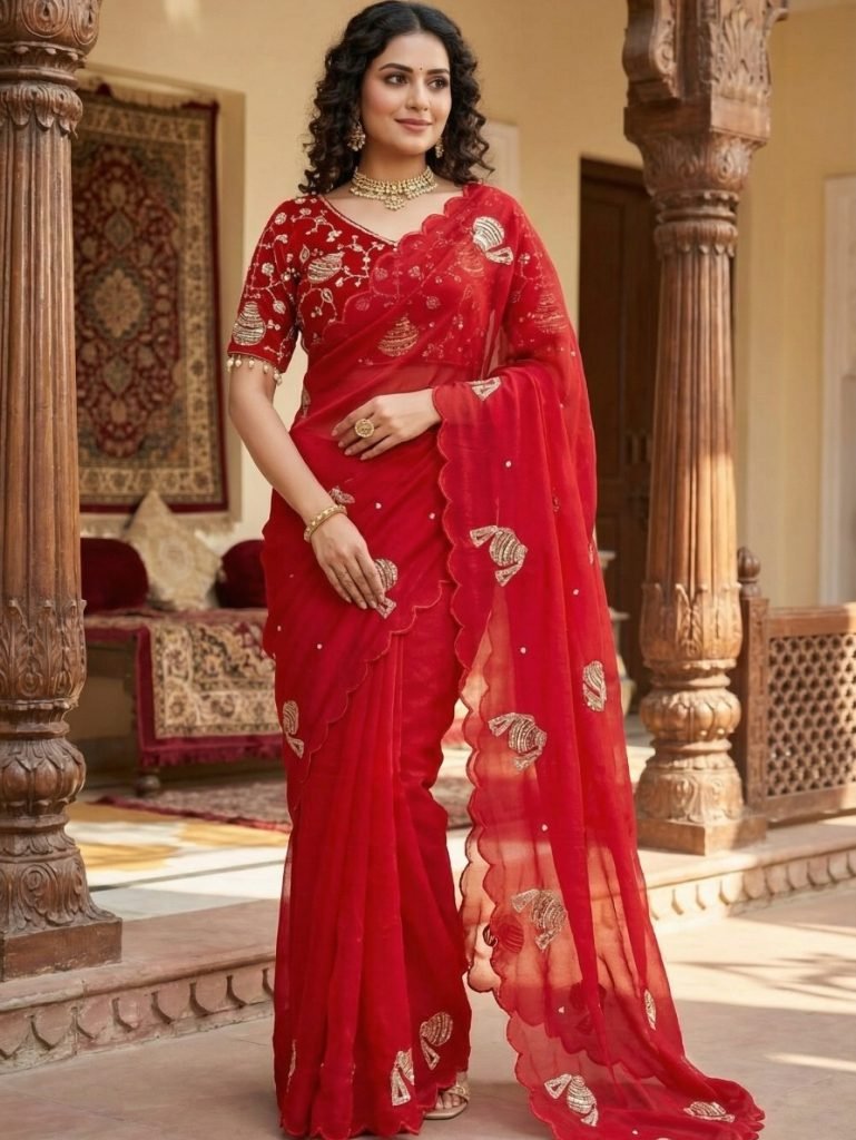 Saree : Pure Soft Fandy Sattin Silk Fabric On Beautiful Hand Work With Cut Work Aarko Border In Saree