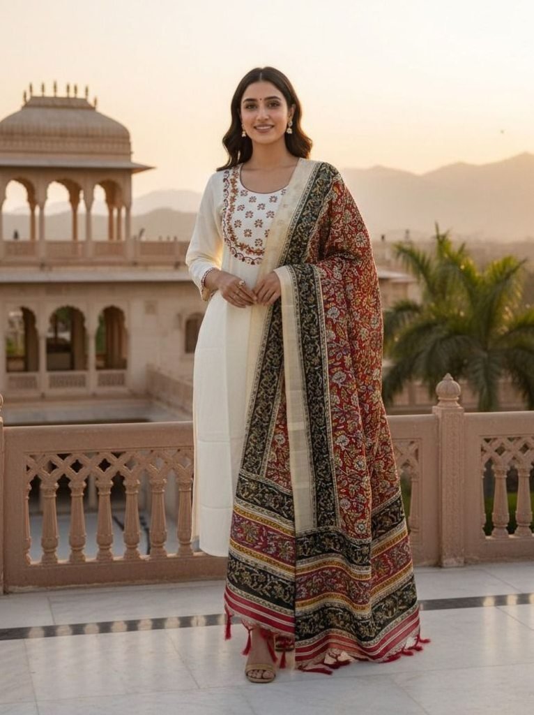 Fabric :- Khadi Cotton With Beautiful EmbroideryInner :- CottonPent :- Khadi Cotton Dupatta :- Bhagalpuri Khadi Print Dupatta (2.25 Mtr)Inclusive :- Top-bottom-dupatta (3 Pcs)