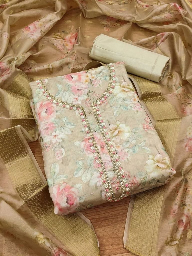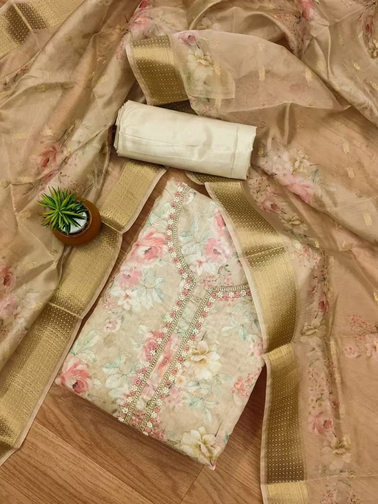 A Comfortable And Stylish Dress Material Set With Elegant Work And Premium Fabrics.
